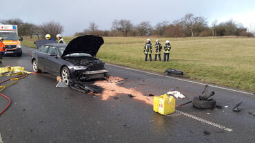 An der Einsatzstelle war es zu einem schweren Verkehrsunfall mit drei beteiligten PKW gekommen. Insgesamt vier Personen wurden dabei verletzt. Drei davon wurden von Feuerwehr und Rettungsdienst aus ihren Fahrzeugen befreit. Ausgelaufene Betriebsmittel wurden mit Binder abgestreut und die Fahrbahn von Trümmern geräumt. Für die Dauer der Einsatzmaßnahmen musste die Landesstraße voll gesperrt werden.