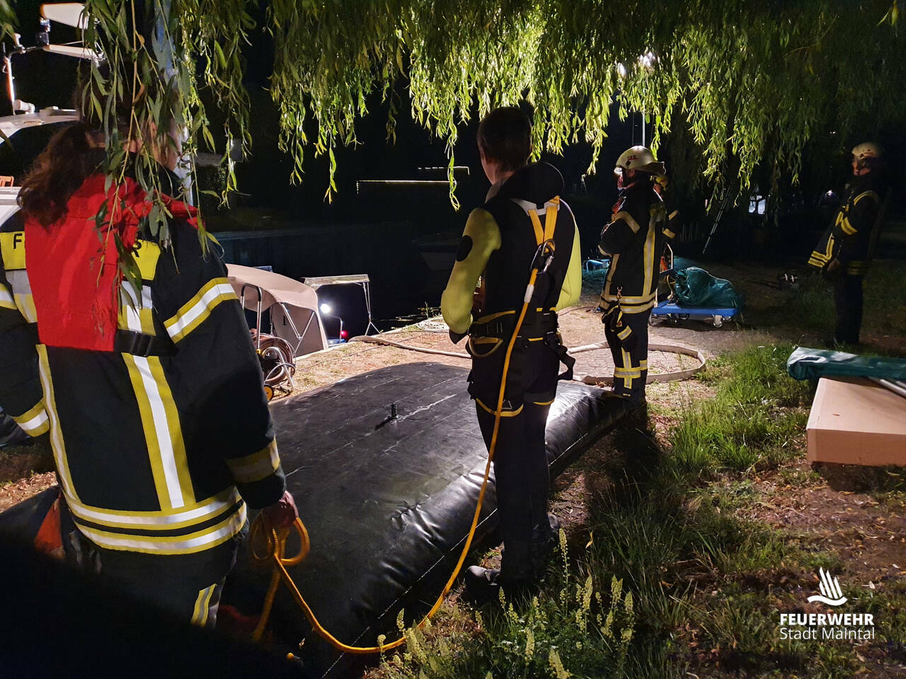 Die Stadtteilwehren Dörnigheim und Bischofsheim, die Taucher Maintal sowie das Hilfeleistungslöschboot Hanau wurden mit dem Einsatzstichwort "H SCHIFF - Boot" alarmiert.
