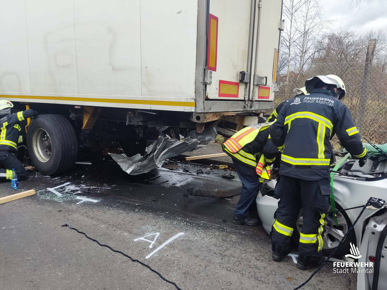 Alle Maintaler Stadtteilwehren wurden mit dem Einsatzstichwort "H KLEMM 1 Y - LKW VU" alarmiert.