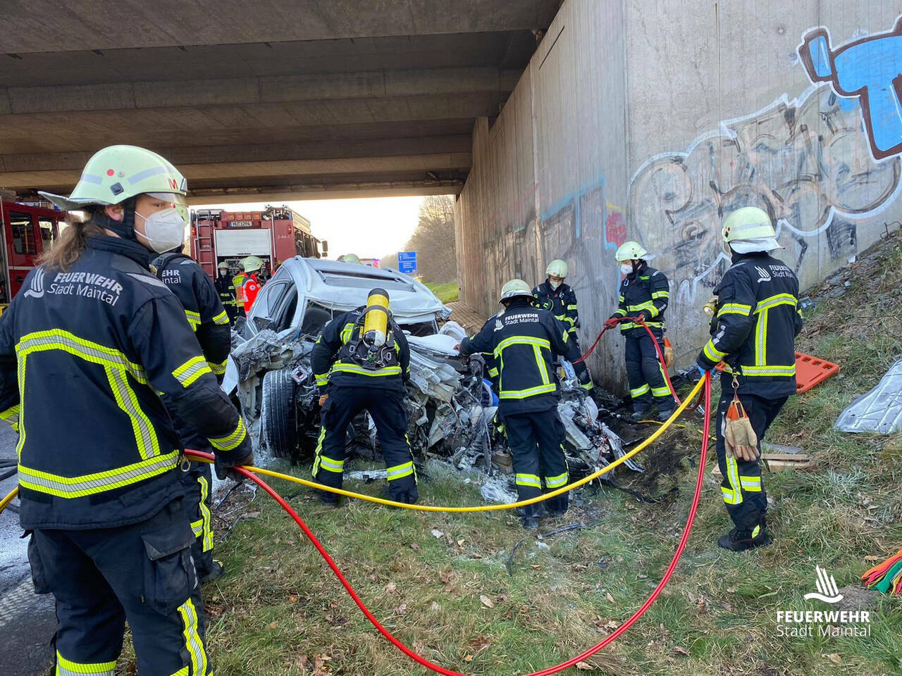 Die Feuerwehr sicherte die Unfallstelle ab und führte Nachlöscharbeiten an dem Unfallfahrzeug durch. Eine im Fahrzeug eingeklemmte Person wurde mit hydraulischem Rettungsgerät aus dem Fahrzeug befreit. Ausgelaufene Betriebsstoffe wurden mit Bindemittel aufgenommen.
