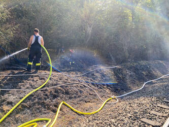 An der Einsatzstelle wurde das Feuer mit mehreren Strahlrohren, Löschrucksäcken sowie Waldbrandhandwerkzeugen bekämpft.